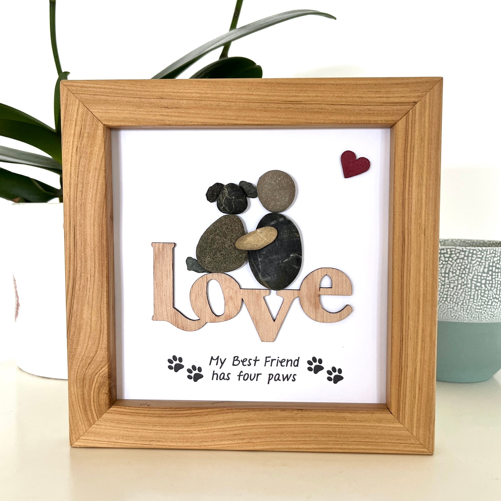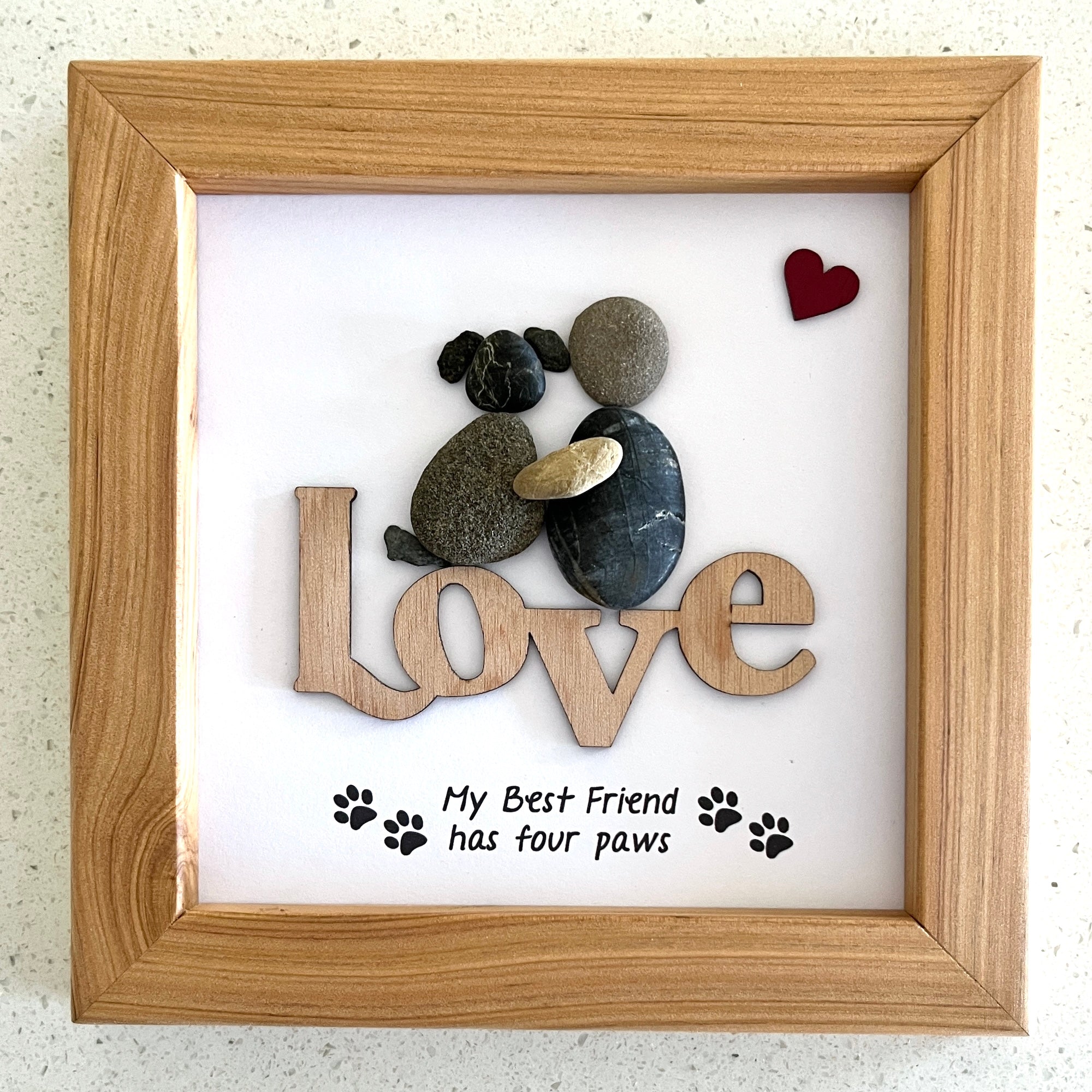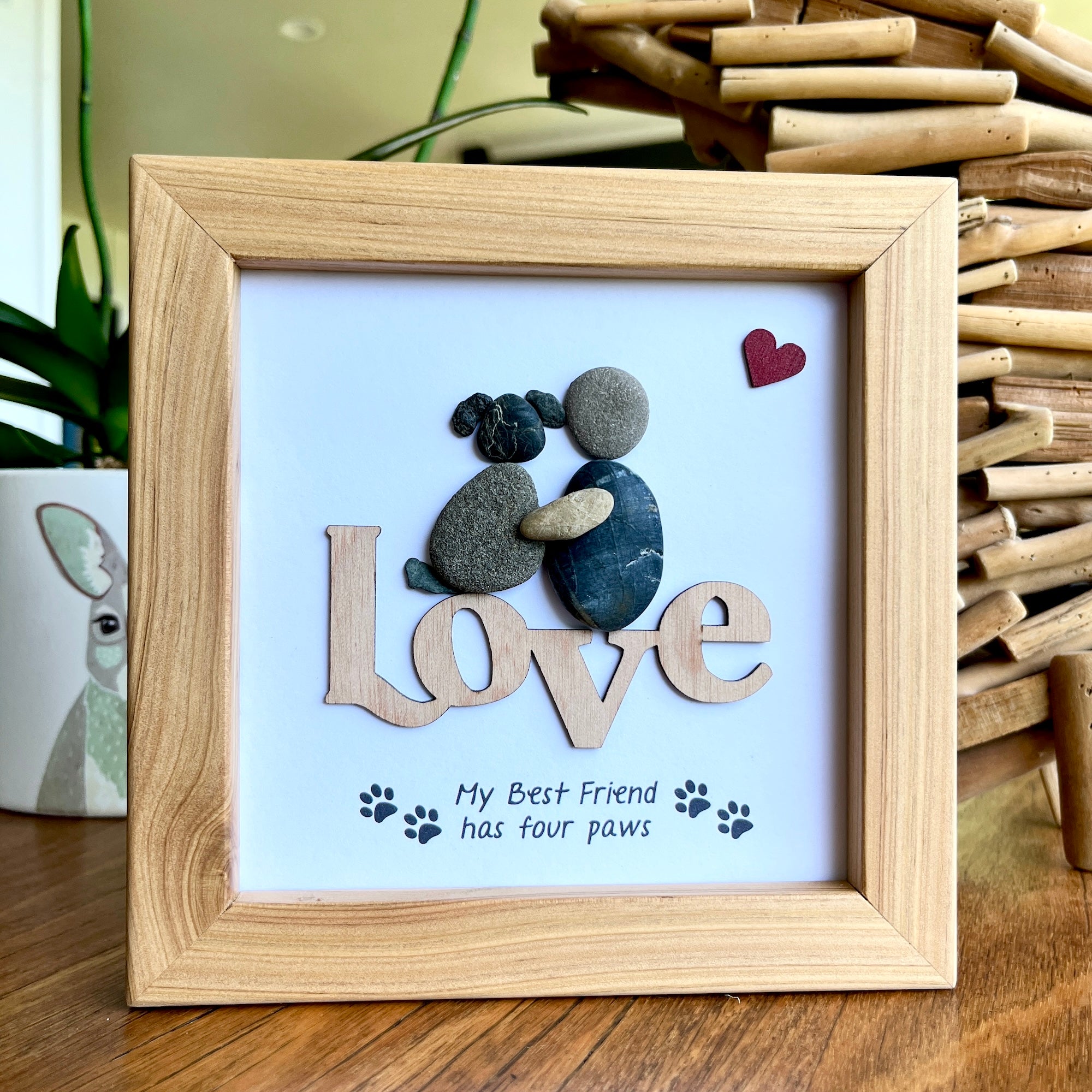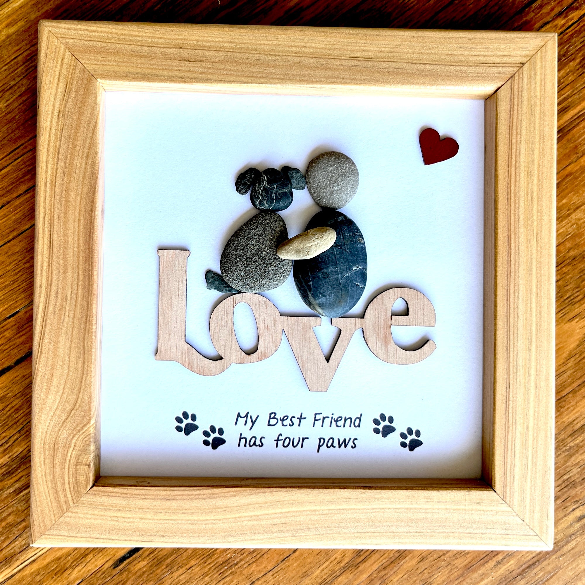 Framed Pebble Art, "My Best Friend Has 4 Paws", Unique Dog Lover Gift