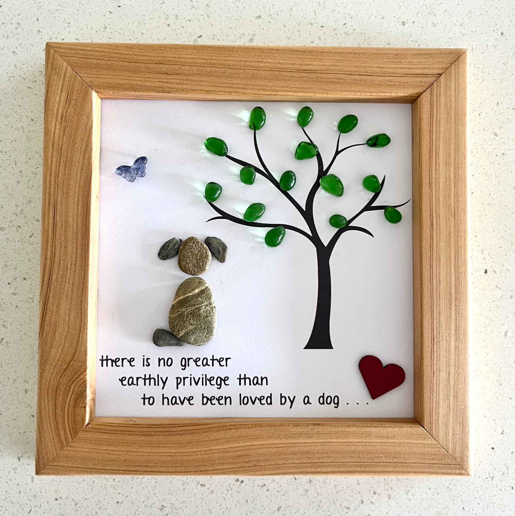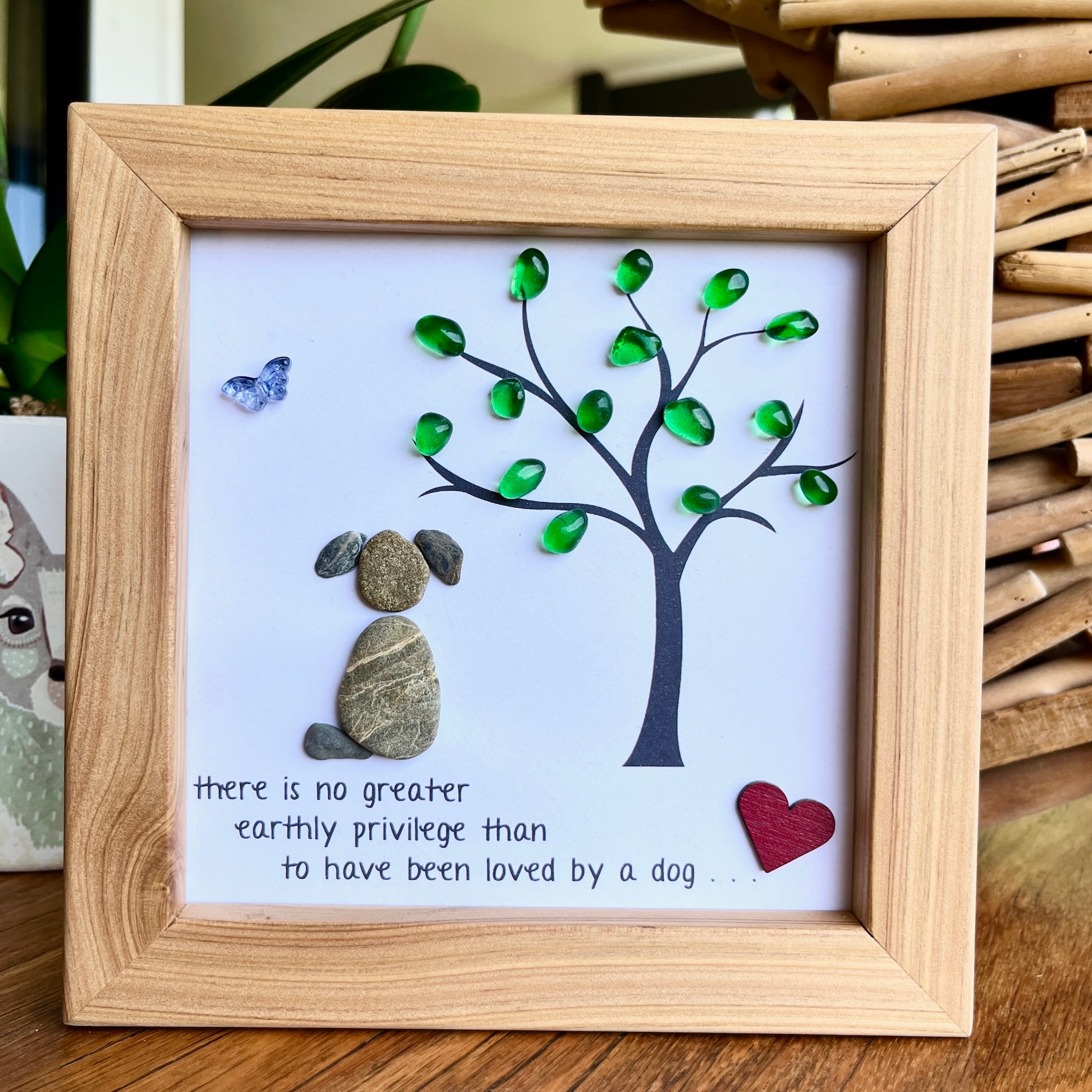 Framed Sea Glass Art, "There is no greater earthly privilege than to have been loved by a Dog"