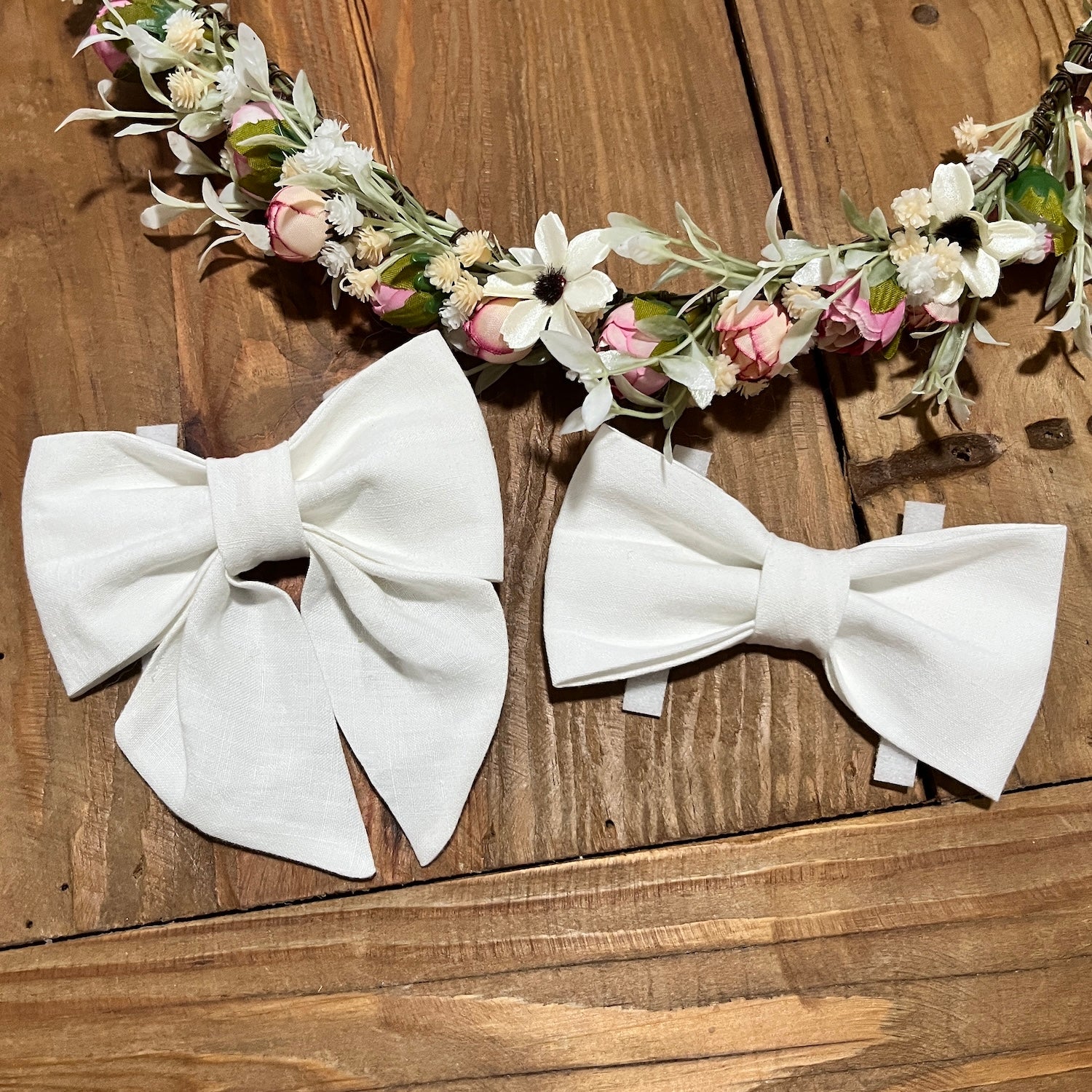 Perfect for pups attending their parents" wedding, this quality White Linen range is available in your choice of Bow Tie or Sailor Bow.