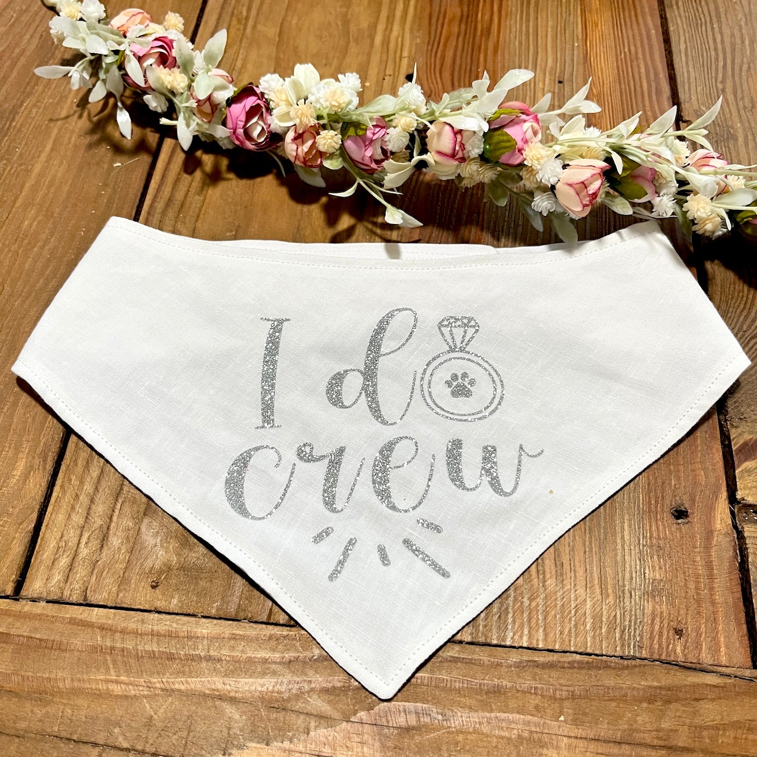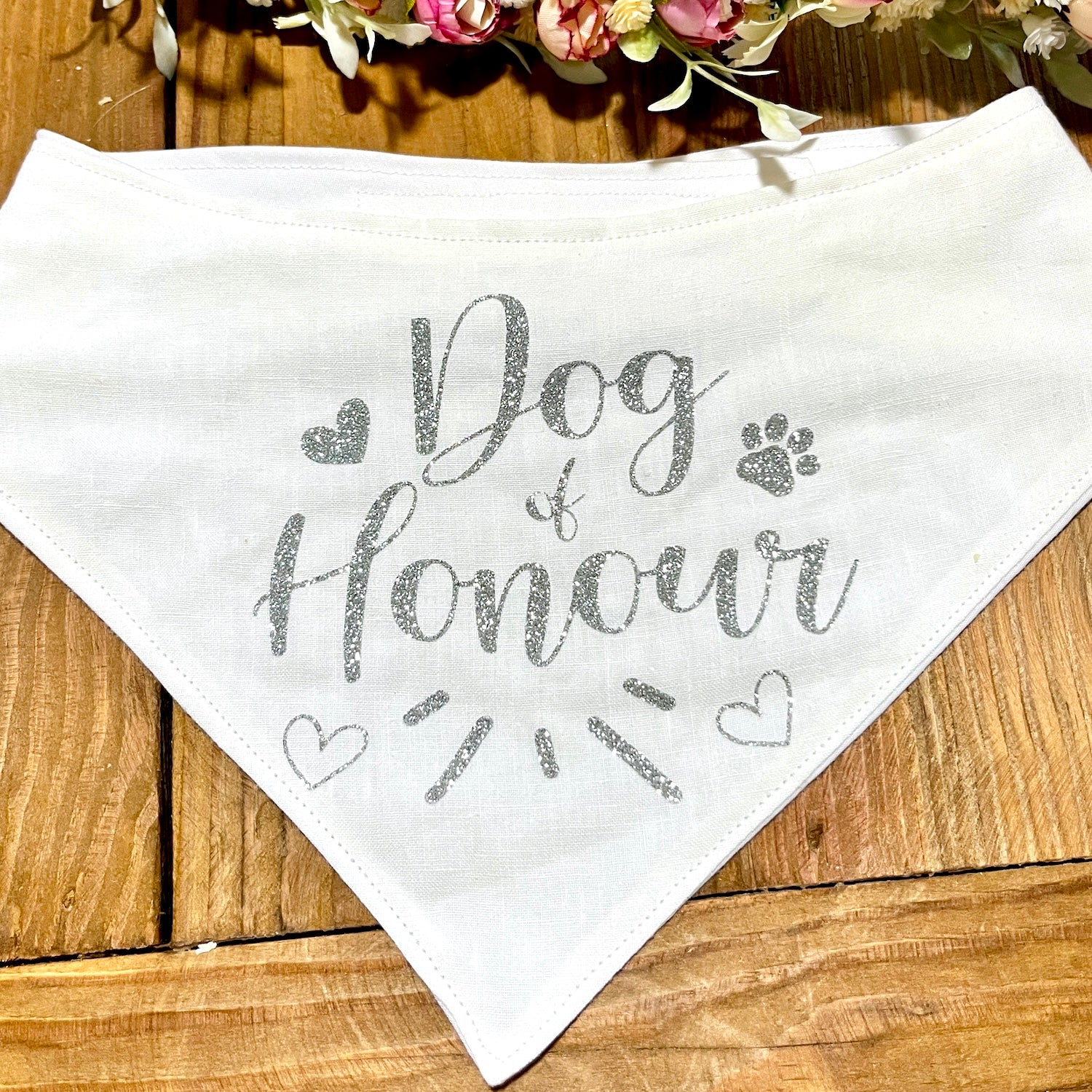White Linen & Glitter Wedding Dog Bandana - Choice of design